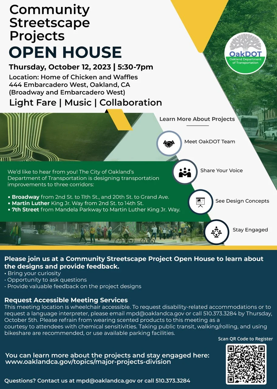 Activate Oakland grants application portal just launched and you can now apply online until Oct 12th! The grants program will provide up to $10,000 per event in funding, as well as marketing assistance, in order to support small events and activities in Oakland’s commercial districts. The goal of the program is to increase foot traffic in Oakland’s commercial corridors, support Oakland’s small businesses, and showcase Oakland’s arts and culture community.